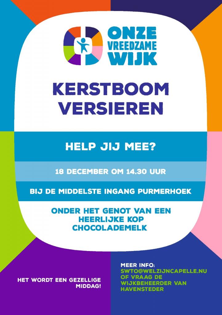 18 december wordt de boom mooi gemaakt samen met kinderen, hulp is welkom.