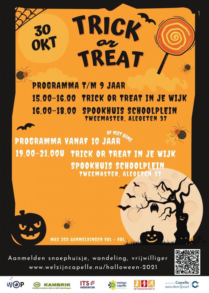 Kinderen lopen eerst in hun eigen wijk langs de snoephuisjes. Daarna lopen zij naar het schoolplein van Twee Master, Aleoeten 37, 2904 VA Capelle aan den IJssel. Bij aankomst op het schoolplein krijgen de deelnemers drinken daarna lopen zij door het spookhuis op het schoolplein. Na het spookhuis is er gelegenheid om een griezelfoto te maken en krijgen de deelnemer een snack. Daarna kunnen de deelnemers naar met een blij of angstig gezicht naar huis.