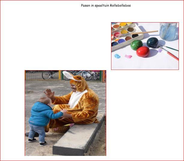 Zoals je ziet zijn er allerlei activiteiten in de speeltuin in de week voor Pasen, waar alle kinderen en hun ouders heerlijk van kunnen genieten. Op zondag 9 april gaan we in de speeltuin eieren verven en versieren. Op woensdag 12 april gaan we paasknutsels maken. Zoals paashaasjes, eierwarmers, etc.