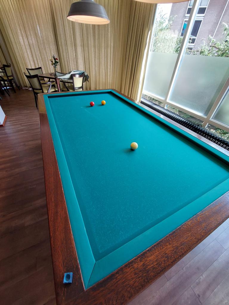 De bewoners van de Spinoza hebben te kennen gegeven dat zij weer graag willen biljarten. Wij hebben het biljart na laten kijken en dat voldoet niet meer.