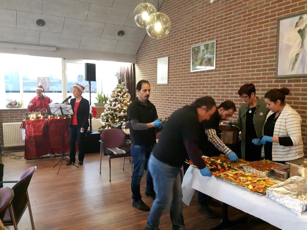 B. Eten/drinken uit het betreffende land/gebied, bereid in de keuken van Wijkrestaurant Schenkel door waar mogelijk, mensen uit het betreffende land.
