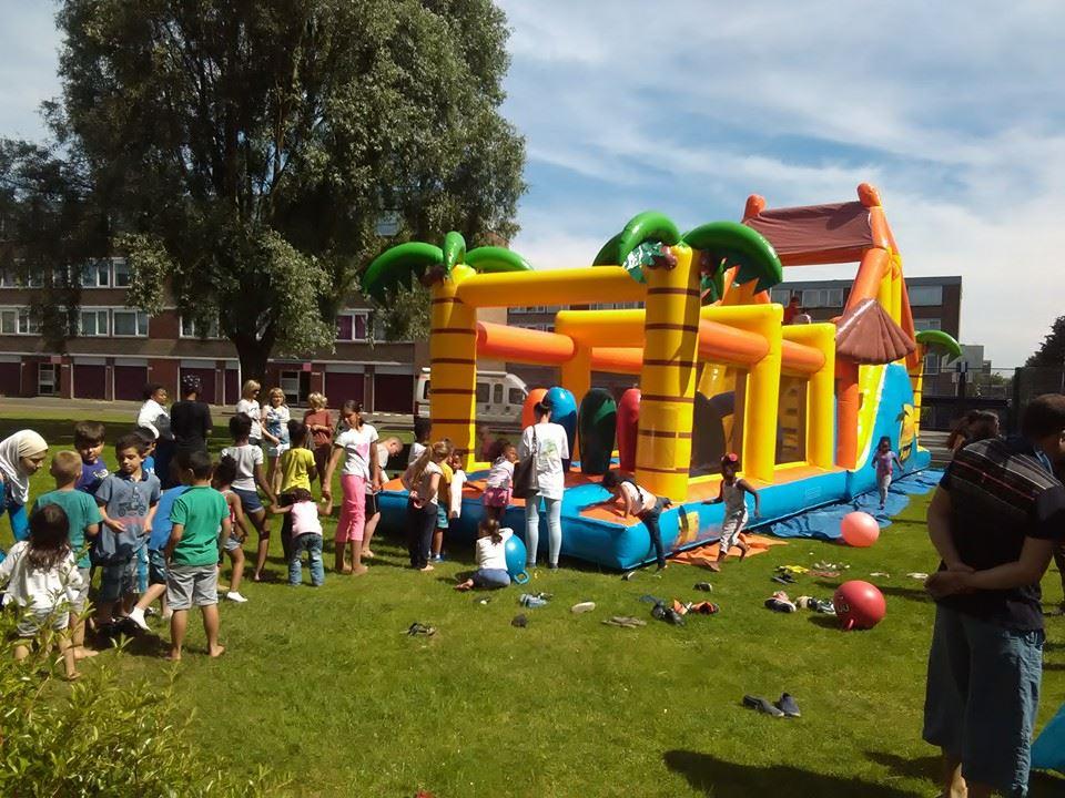 Een gezellige Beachparty met beachstombaan,scheilbaan,en ook beachvolleybal. Wij hebben zelf een zwembad voor groot en klein. Het is de bedoeling dat ouders meekijken, zodat de activiteit op een veilige manier verloopt.