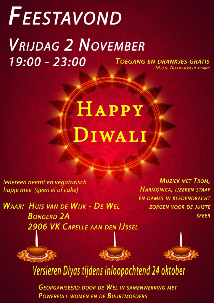 De dames van de inloop willen graag i.s.m. Powerfull woman en de dames Buurtmoeders een divalifeest organiseren. Divali is een Hindu feest (lichtjesfeest) de overwinning van het goede op het kwade. Het feest is officieel op 7 november.