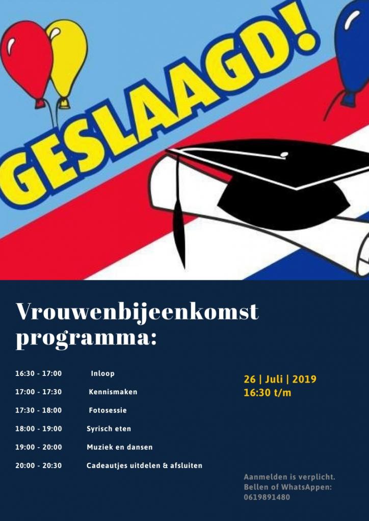 Alle vrouwen die een inburgeringsdiploma hebben gehaald en voor de meiden die geslaagd op de middelbare school