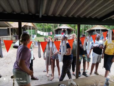 Wat was het een ontzettend mooi kamp, met schitterend weer! We hebben veel leuke dingen kunnen doen: zwemmen in een meertje, buitenspelen, fietstocht, bezichtigen van het 'Verscholen Dorp' (en héél weinig slapen). Er zijn mooie blijvende herinneringen gemaakt!
