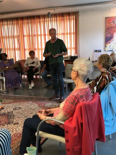 De gasten zijn met elkaar in gesprek gegaan. Waar nodig eerst als kennismaking en vervolgens werd door de heren van Sonrisa het gesprek op gang gebracht over de waarde van het ontmoeten. Welke levenservaringen hadden de deelnemers op het gebied van ontmoetingen die iets bijzonders hebben opgeleverd? Het gespreksonderwerp leidde tot heel mooie verhalen uit het verdere verleden, maar ook van de afgelopen jaren. Een een aantal van deze gasten heeft elkaar namelijk bij Goud voor Oud van Sonrisa Rijnmond leren kennen. Er werd uitgesproken hoe belangrijk dit voor hen is geweest.