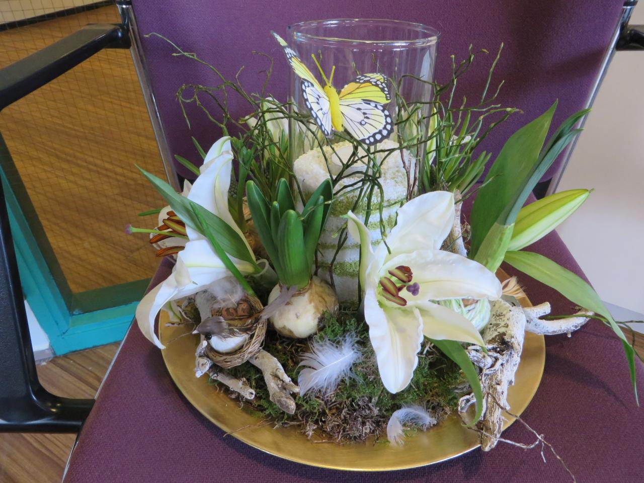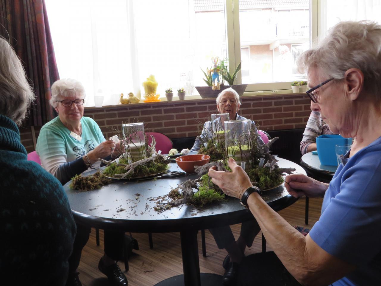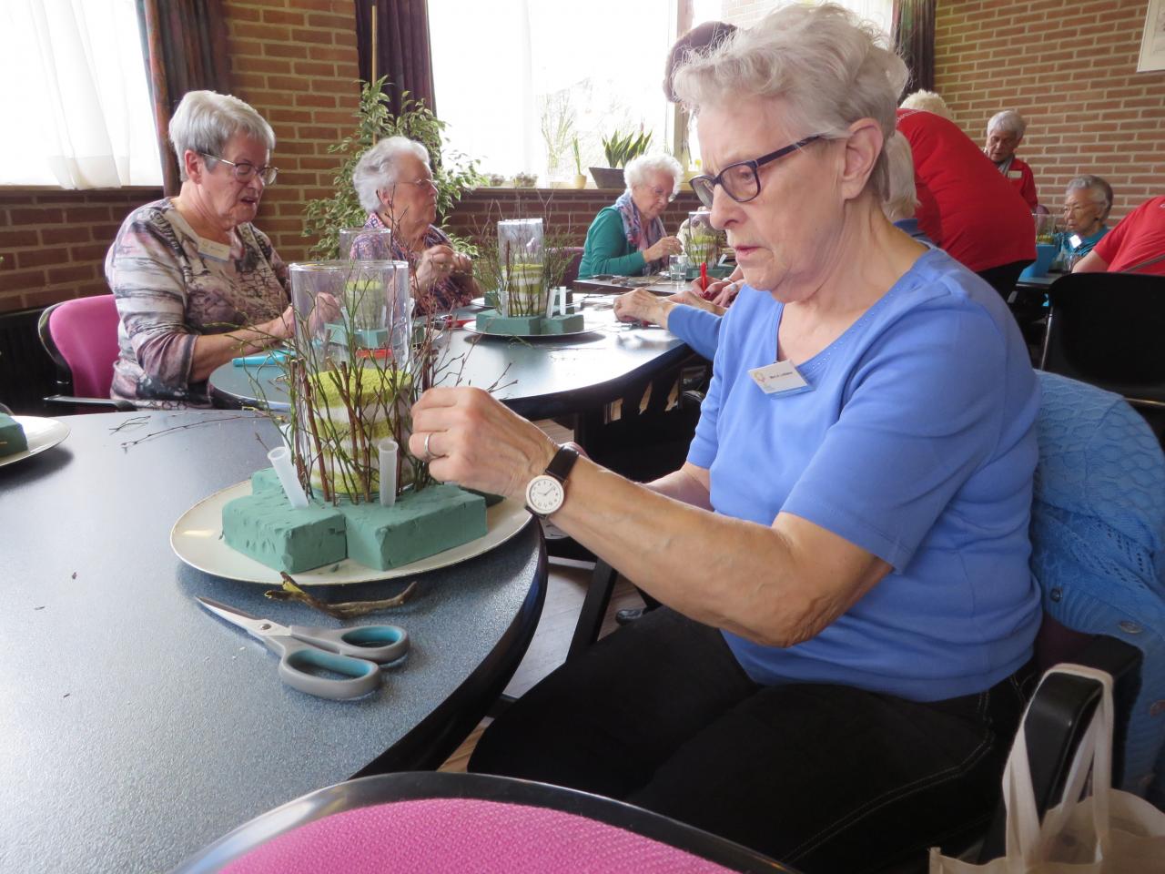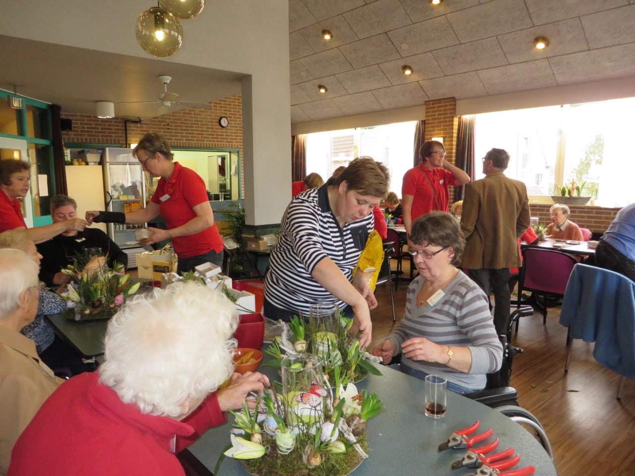 Het was weer zover: we mochten een prachtig bloemstuk maken! 25 gasten en 11 vrijwilligers waren aanwezig. De workshop werd gegeven door Yvonne Mulder, onder haar begeleiding werden stukjes gemaakt waar iedereen nog over praat.