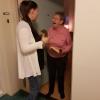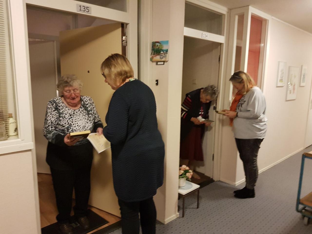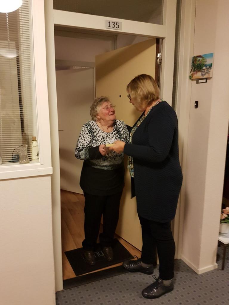 Mevrouw De Beer, één van de gasten, nam blij verrast de lekkernij in ontvangst: