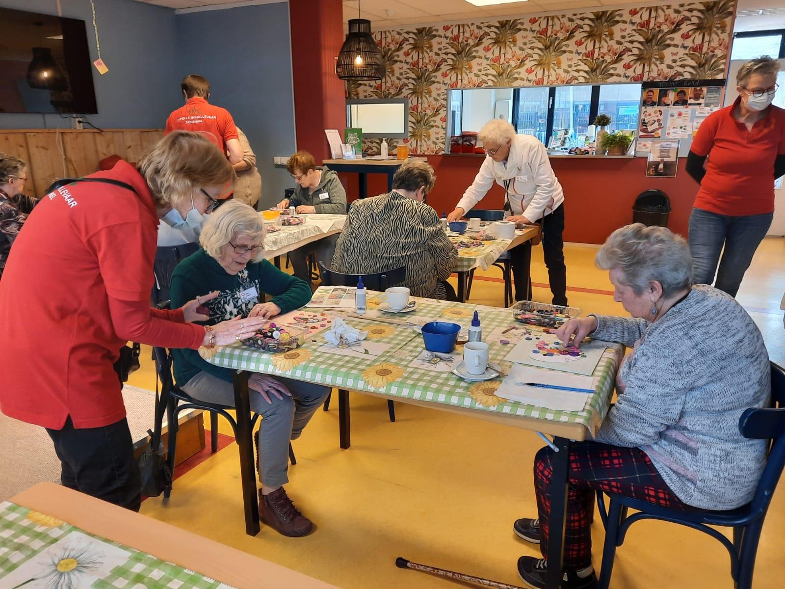 Wat waren we blij om met een groepje weer een gezellige 'Zonnebloemmiddag' te hebben! Er waren veel creatievelingen en er werden prachtige 'dikke dames' geschilderd. Ook werd er enthousiast geknutseld met knopen, maar dan zonder naald en draad!
