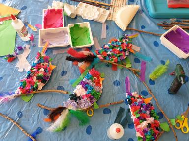 De vogeltjes die deze maand gemaakt zijn zo leuk geworden! De aanwezige kinderen hebben het enorm naar hun zin gehad.