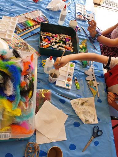 Voor ieder thema is een voorbeeld gemaakt en worden de materialen op tafel gelegd. Zo kunnen de kinderen meteen aan de slag. Er is een vakkracht aanwezig om de kinderen te helpen.