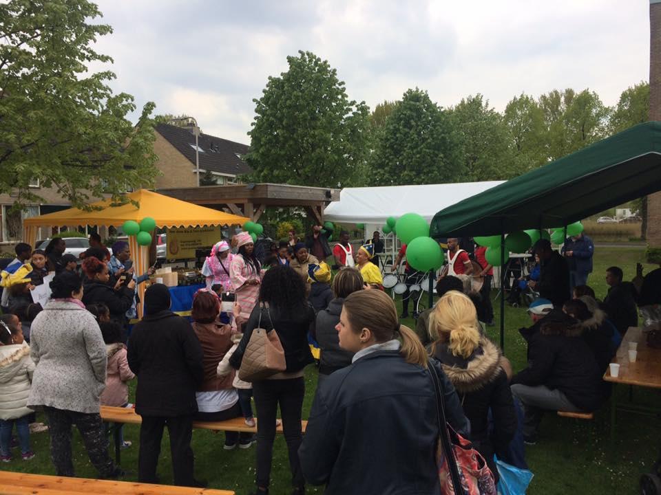 Er was een Brass Band aanwezig waarop we gezellig dansten in Curaçaose en Nigeriaanse klederdracht. Alle aanwezigen konden genieten van lekker drinken, een bakje soep, hapjes en warm eten. het eten werd bereid door 2 bewoners in de buurt .Ten slotte konden wij afsluiten met een lekkere taart en een koi lechi, een Antilliaans lekkernij wat we in Nederlands kunnen vertalen als een zoetige melk lekkernij in de vorm van een 5.
