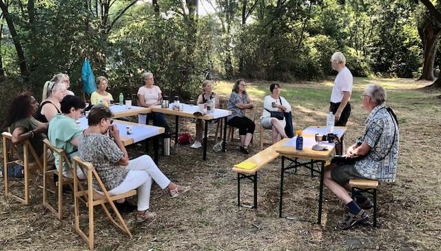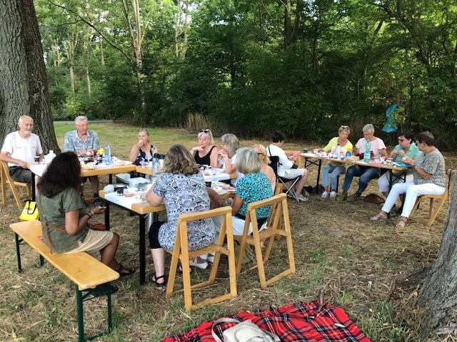 Anekdote: De dames dachten dat ze op de grond moesten zitten, sommige hadden hun eigen stoeltje en kleden meegenomen. Ze waren zeer verrast met de aankleding van de picknick.