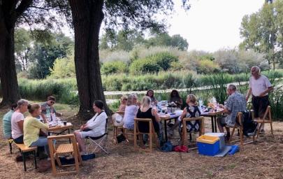 terug naar het beginpunt van de wandeling, oudste gedeelte van het Schollebos, hebben we met zijn allen lekker gepicknickt, midden in de natuur met een prachtig uitzicht op het water. De bomen waaronder we hebben gepicknickt gaven ons veel verkoeling op deze dag.