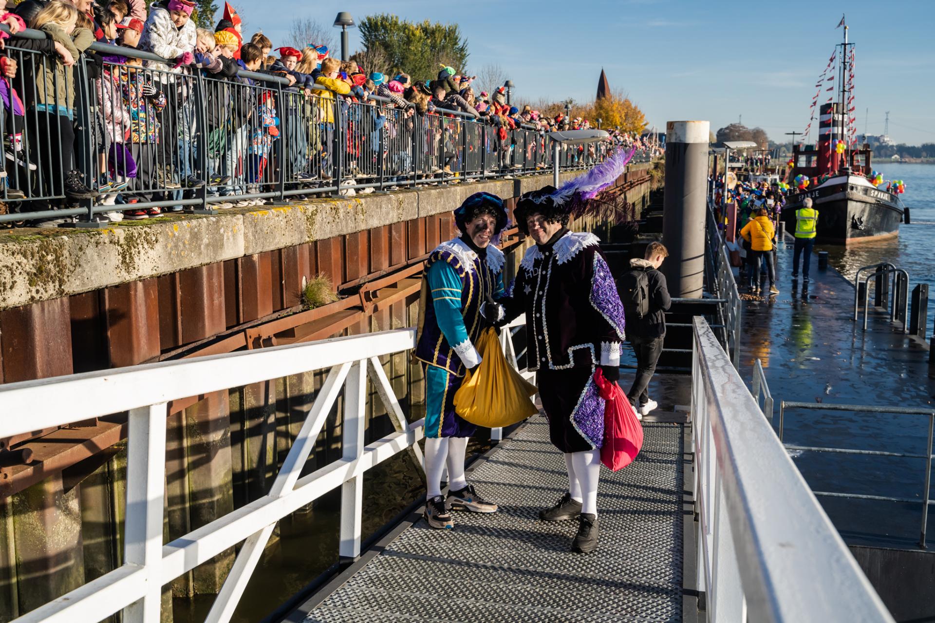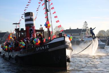 De wachtende kinderen hoefden zich niet te vervelen want zij werden leuk vermaakt met Ballon pieten die de mooiste figuren voor hun maakte en de Steltpieten, ook op de IJssel was er veel spektakel want de Water Piet haalde halsbrekende toeren uit.