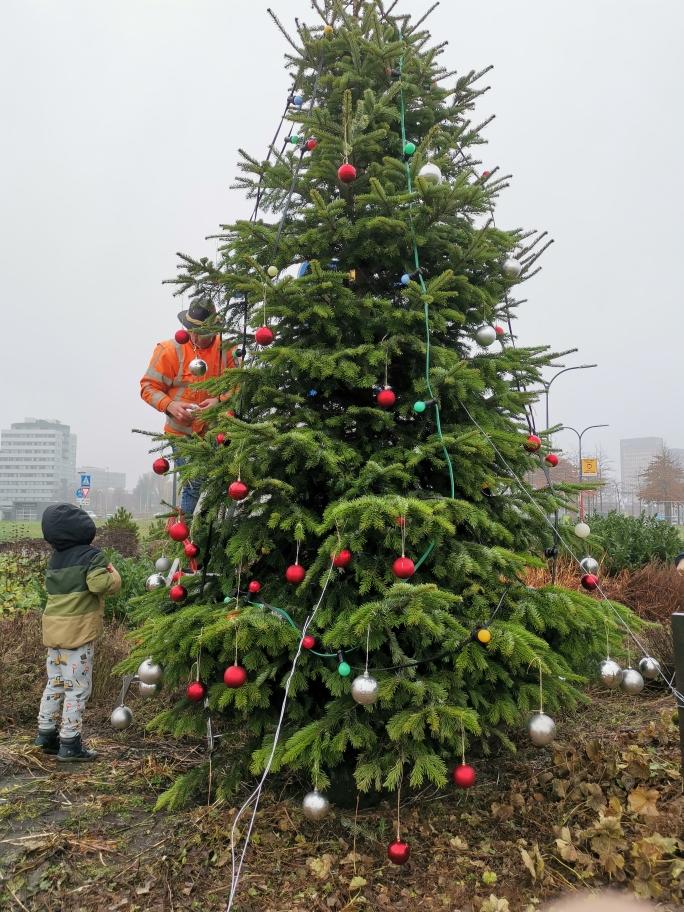 Met kids en wijkbewoners zijn er 5 kerstbomen in de wijk Fascinatio geplaatst en versierd. De mooiste en de grootste stond op de toegangsrotonde. Met de gekleurde verlichting geeft de grote kerstboom in de kersttijd het gevoel van thuiskomen in de wijk Fascinatio.