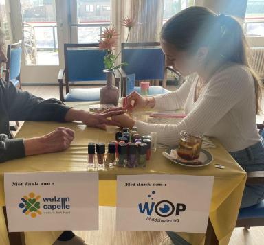 Dit was mijn eerste activiteit bij de serviceflat Schinckelhove en wat was het geweldig! Het was zo leuk om de tijd te nemen om met anderen te praten en te lachen. Ik heb zoveel mooie verhalen gehoord en het was geweldig om te zien hoe blij de dames, en een meneer, waren om leuke gelakte nagels te hebben. Het was een fantastische manier om mijn tijd door te brengen en ik kijk er al naar uit om het opnieuw te doen.