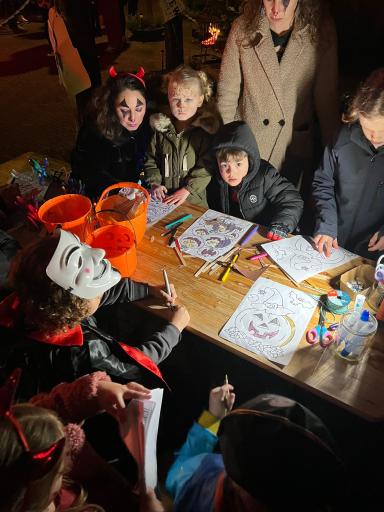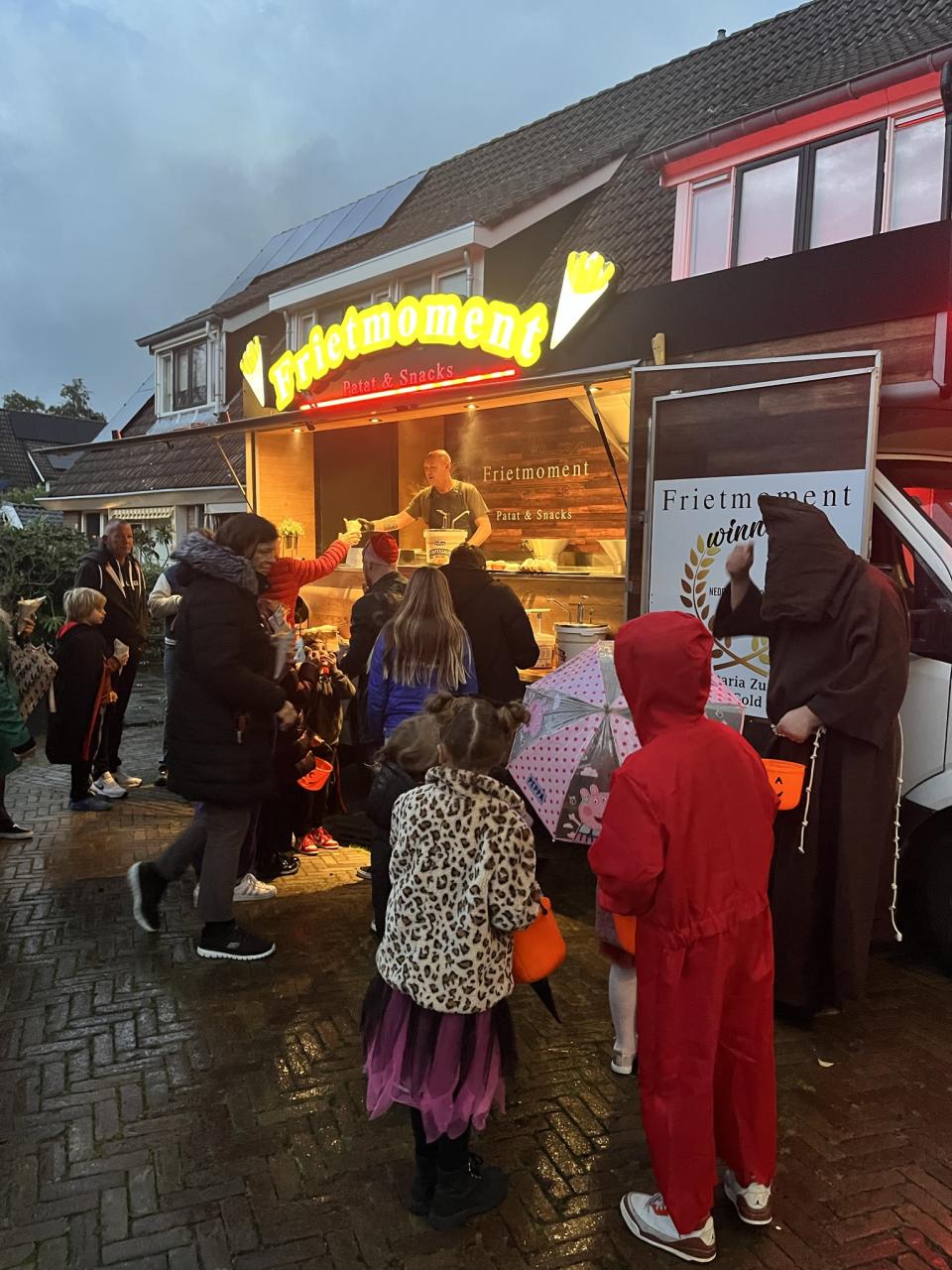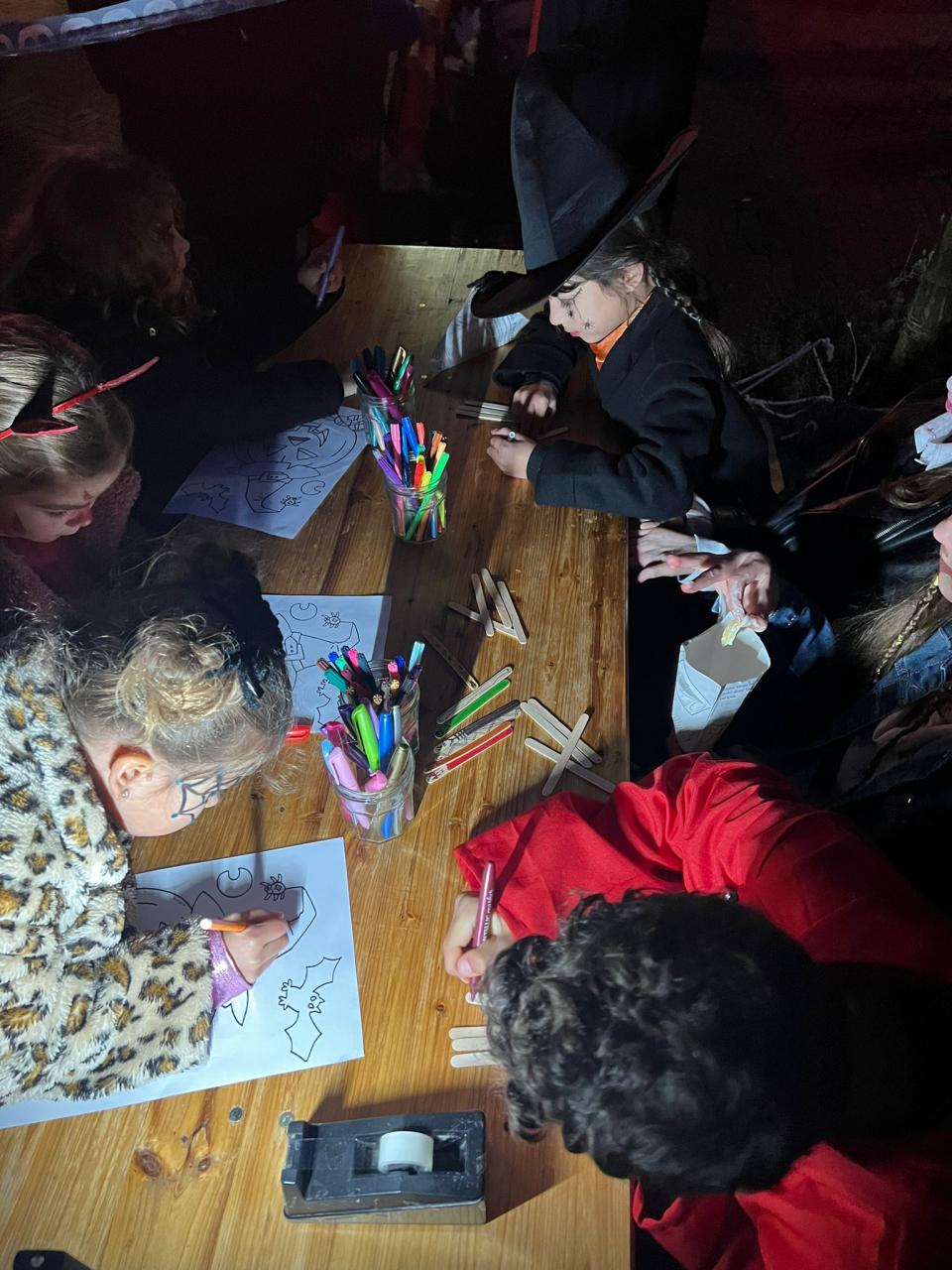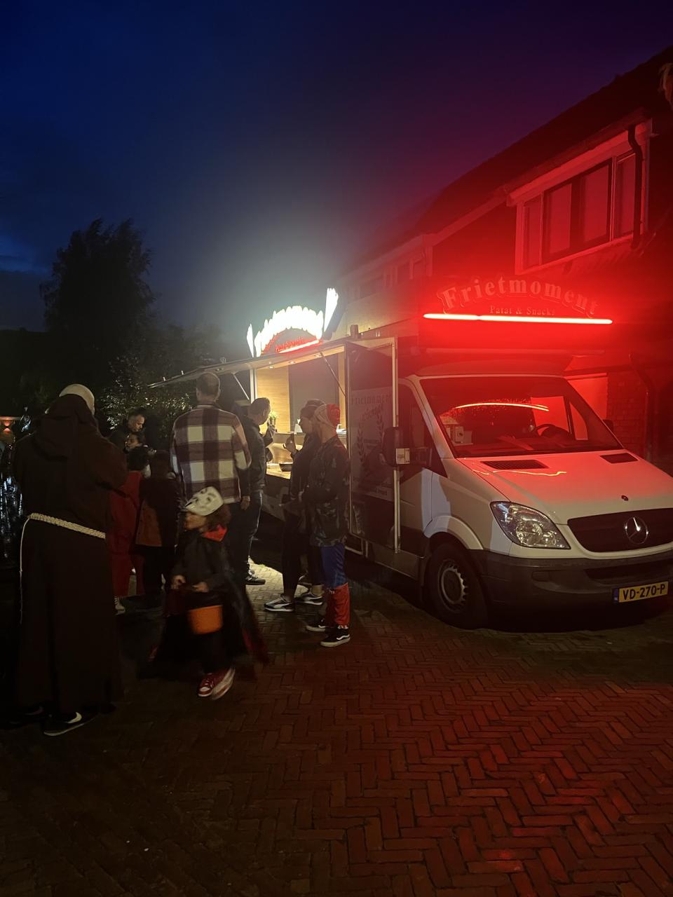 Vanaf half 6 kon je een lekker frietje met een snack halen. We waren met een grote groep volwassen en kids. Voor de kleine kinderen was er een knutseltafel waar ze een spin of ander spook knutsel konden maken.