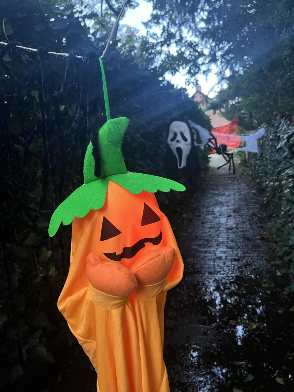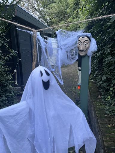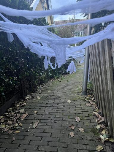 Om 4 uur werd gestart met de opbouw van het griezelige spookpad. Er waren veel buurtbewoners die mee hebben geholpen.