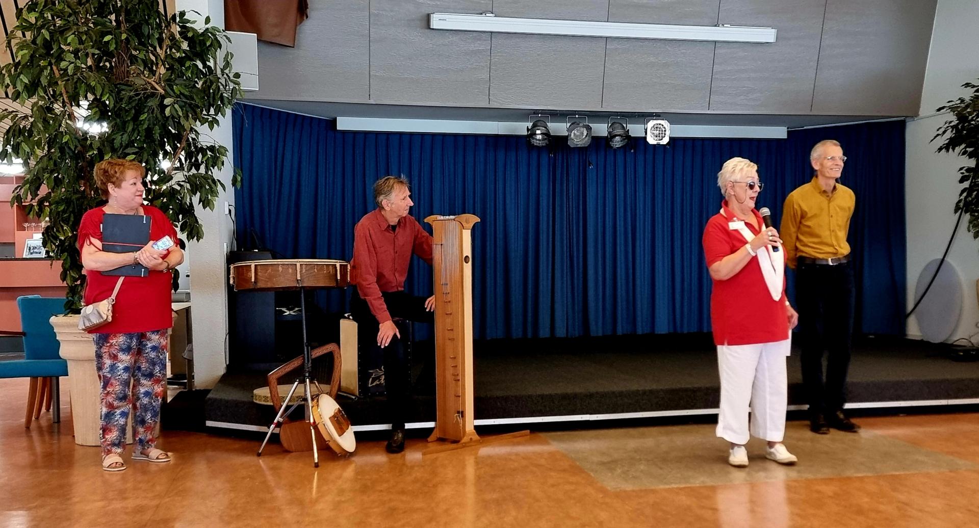 Locatie Bermensteijn is een perfecte locatie voor grote activiteiten. Niet alleen qua ruimte maar ook de catering. Ontvangst met koffie/thee en een kleurrijk gebakje. Gevolgd door verhalen van storyteller Hans van Woerkum en muzikaal begeleid door Onno van Tongeren. Verhalen worden dan zoveel mooier en levendiger, een aanrader. Snel de overheerlijke lunch uitserveren en door naar Andy & Grace. En wie denkt dat je in de stoel kan blijven zitten heeft het mis, wat een geweldige muzikanten zijn dit. Voetjes zelfs wieltjes van de vloer!