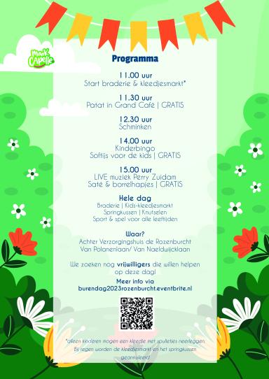 - Het plantsoen tussen de Rozenburcht en de Polanenlaan wordt de feestlocatie. Ook vinden er activiteiten plaats in het Grand Café van de Rozenburcht