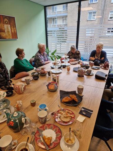 Wat hebben onze deelnemers heerlijk genoten van de hightea. Na een lange tijd zijn we weer met de dames en heer iets lekkers gaan eten. Onder het eten door hebben ze lekker met elkaar gesproken over de dagelijkse dingen. Na afloop was er zoveel over dat ze allemaal nog iets mee konden meenemen naar huis.