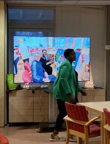 De, inmiddels 12 jarige, beamer die gebruikt werd voor presentaties was defect en het loodzware projectiescherm was al aardig versleten. Via Maak Capelle hebben hebben we een aanvraag ingediend voor een groot 70 inch beeldscherm op verrijdbare trolley. Deze aanvraag werd gehonoreerd en bij het afscheid van Astrid Keerveld, in de Serre aan de Beemsterhoek, werd een foto collage getoond op het grote beeldscherm dat via Maak Capelle verkregen werd. Ook de Linedance instructrice zag mogelijkheden om danspassen op het beeldscherm te tonen.