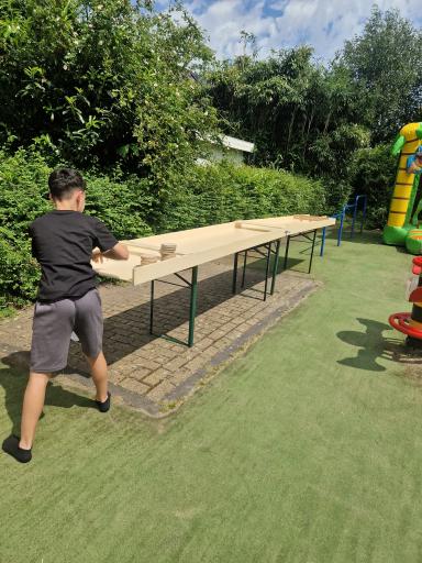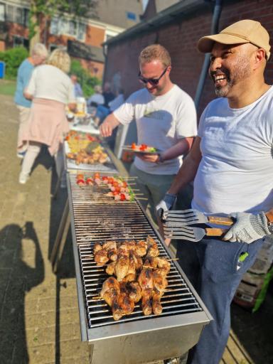 Het was een geslaagde dag! Overdag kon iedereen losgaan, van jong tot oud met onder anderen springkussens en oud Hollandse spellen. Verder waren er lekker veel snacks, drinken, popcorn en suikerspinnen. Rond 16:00 uur werd het speelplein omgetoverd tot een gezellige Caribische BBQ onder genot van heerlijke stukken vlees, salades en drankjes.