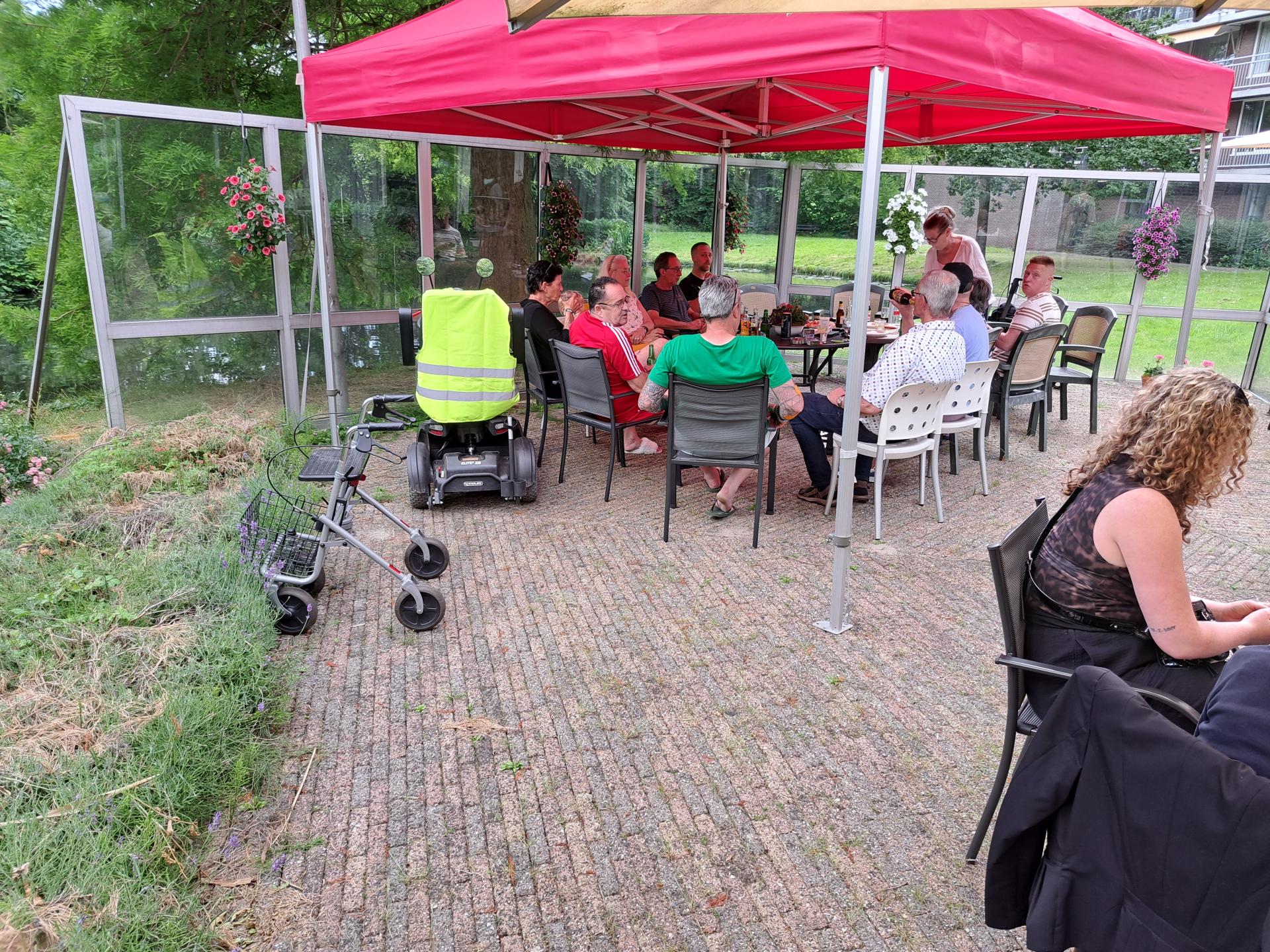 Door het schitterende weer met volop zon kon een deel op ons gezellig terras zitten - de ouderen prefereerden de koele terras zaal.