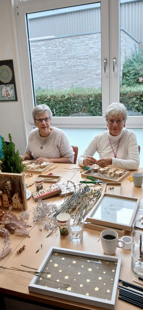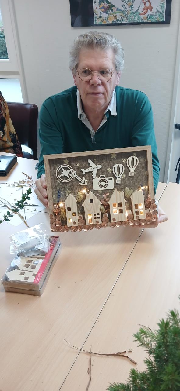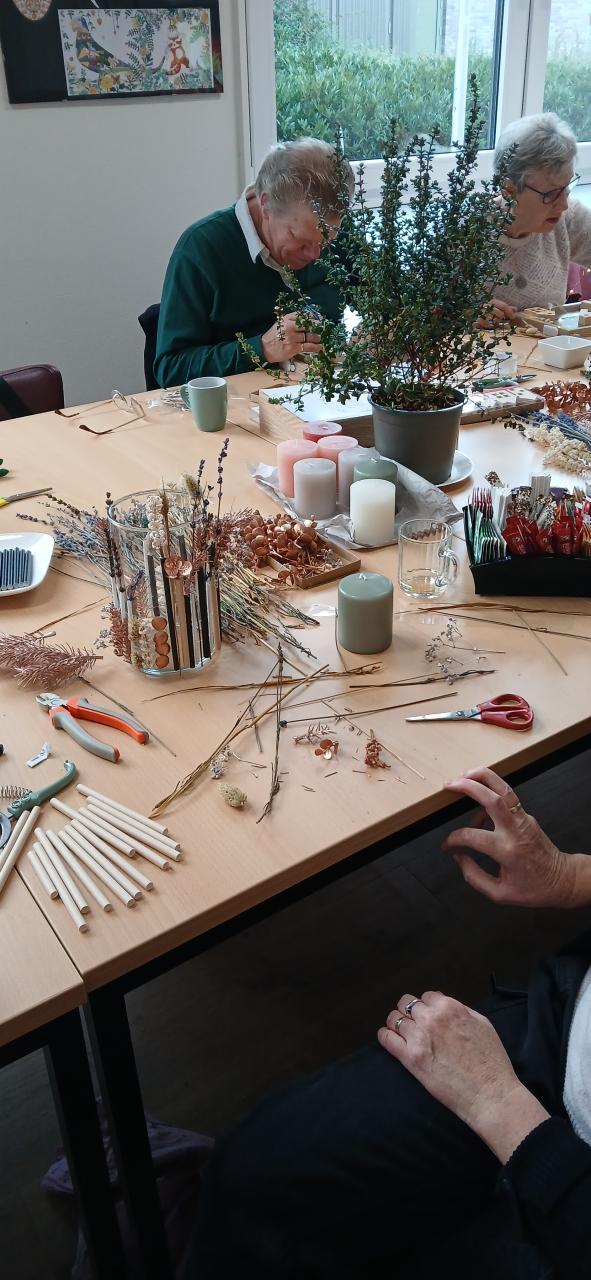 Naar eigen creativiteit werden de objecten versierd en het was een groot succes en ze vonden het zelfs leuker dan kerststukjes maken.