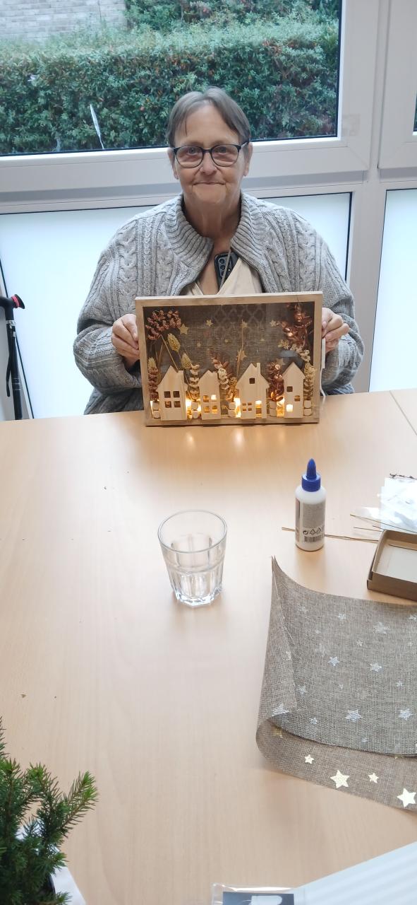 Bewoners konden kiezen uit een vaas decoreren of een fotolijstje decoreren met houtenhuisjes.