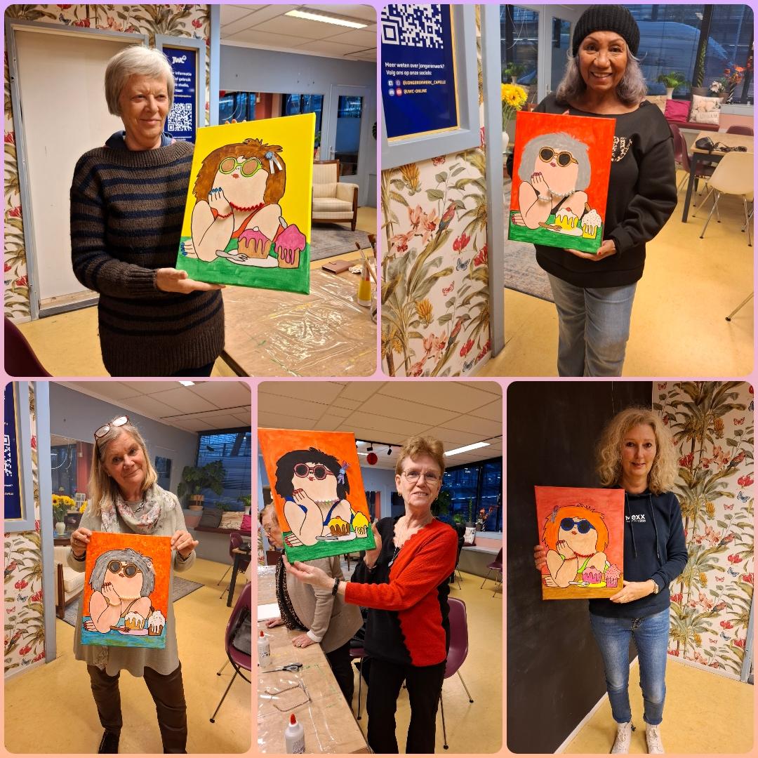 Op 27 november heeft Paintandpimp met een groep dames Dikke Dames geschilderd en gepimpt met kralen, decoratie bloemen en strikjes.