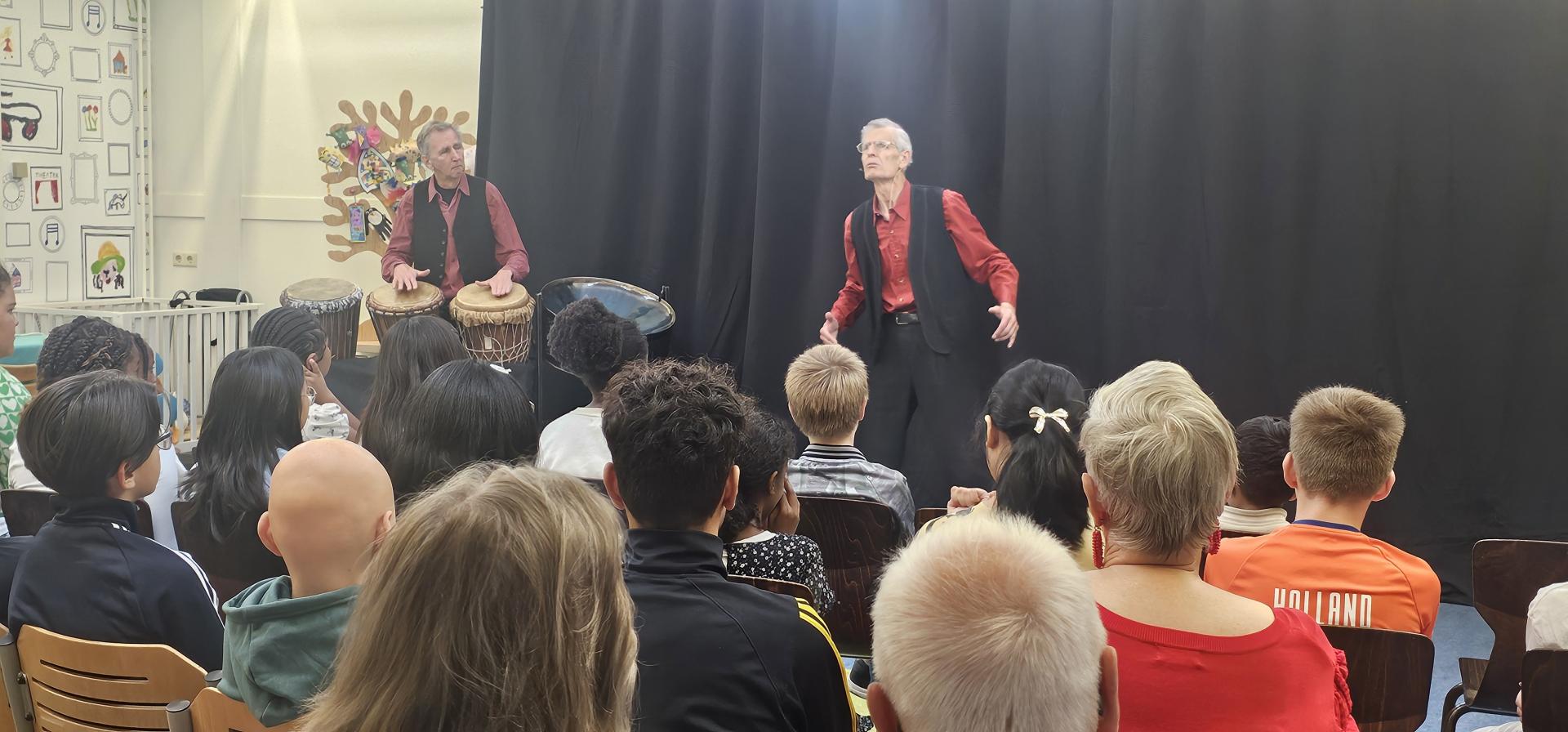 De laatste en vierde bijeenkomst was op 3 oktober 2025 tijdens de Kinderboekenweek met als thema “Vol avontuur”. Verhalenverteller Hans van Woerkom en muzikant Onno van Tongeren namen de aanwezigen mee in het thema via het verhaal “Schatten van Piraten”. Na afloop stellen de ca. 15 senioren en jongeren elkaar vragen over het verhaal en was er voldoende tijd om met elkaar in gesprek te gaan erover. Na afloop vroegen we de senioren en leerlingen hoe ze dit hadden ervaren. Het bracht ze rot nadenken over het verhaal en wat erover gezegd werd door Hans van Woerkom en de vragen die zij voorgelegd kregen. Er ontstonden serieuze gesprekken tussen jong en oud over die vragen die betrekking hadden op avontuur. Het gaf begrip voor elkaar en interesse in elkaar. Dat was ook te zien hoe intens men met elkaar sprak. De kinderen vonden het leerzaam en gezellig. De senioren hadden genoten van de inbreng van de leerlingen en de openheid naar hen.
