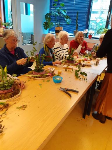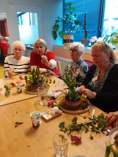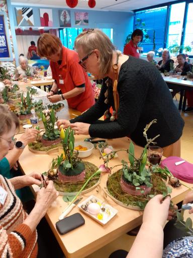 Wat is dan leuker om een mooi bloemstuk te maken voor Pasen. Zo gezegd zo gedaan. Op 16 april 2025 ging onze Ellie Bos met 20 gasten en 4 vrijwilligers aan de slag. Het resultaat mocht er dan ook best wezen.