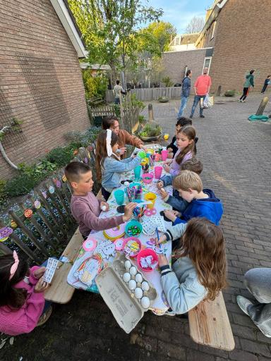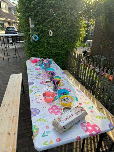 Op zaterdag 19 april vond de gezellige Binnenhof Paaspret & Eierenzoektocht plaats. Een leuke traditie waarbij kinderen volop konden genieten van het zoeken naar paaseieren, knutselen en allerlei vrolijke spelletjes. De kinderen begonnen met leuke opdrachten, daarna gingen ze fanatiek op zoek naar de verstopte paaseieren op het Binnenhof. Er was ook ruimte voor creativiteit: paaseieren werden prachtig versierd en er werden schattige paasdecoraties geknutseld. Aan het einde van de activiteiten kreeg ieder kind een lekkere chocolade paashaas, en de allerkleinsten werden verrast met een zachte paasknuffel. We sloten de avond af met een gezellig samenzijn voor jong en oud, waarbij iedereen zijn eigen drankje meebracht en we samen genoten van een vrolijk Paashazenfeest.