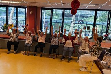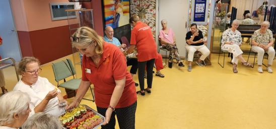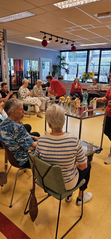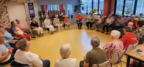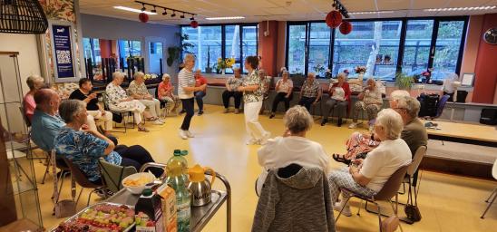 Als van ouds weer onze stoeldans workshop. gegeven door onze Ans. Hoe kan het ook anders! Zittend op een stoel met je armen en benen bewegen op muziek. We werden de hele wereld overgenomen: van de mambo naar de cancan, stierenvechten in Spanje door naar Mexico weer in Nederland te belanden. Iedereen deed super enthousiast mee. Dit alles onder genot van een drankje, hapje en overheerlijk vers fruit. Volgend jaar zeker weer!