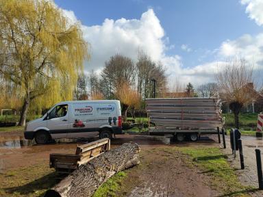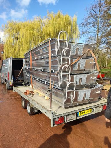 Helaas bleek het gewicht zo zwaar te zijn, dat hulp van de leverancier noodzakelijk was. Met meer dan voldoende vrijwilligers om de bootjes van de aanhangwagen te tillen, was die klus in een uurtje geklaard.