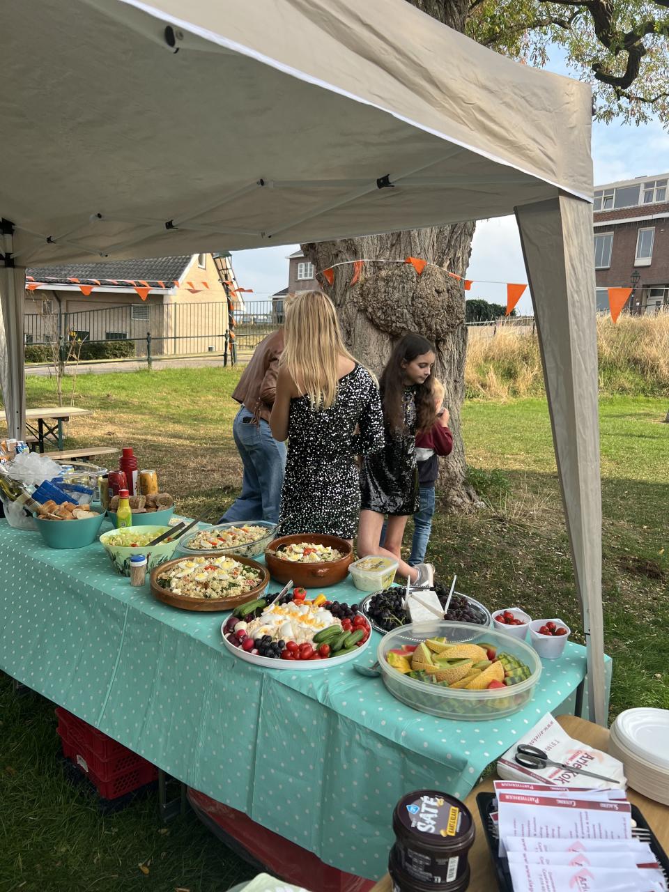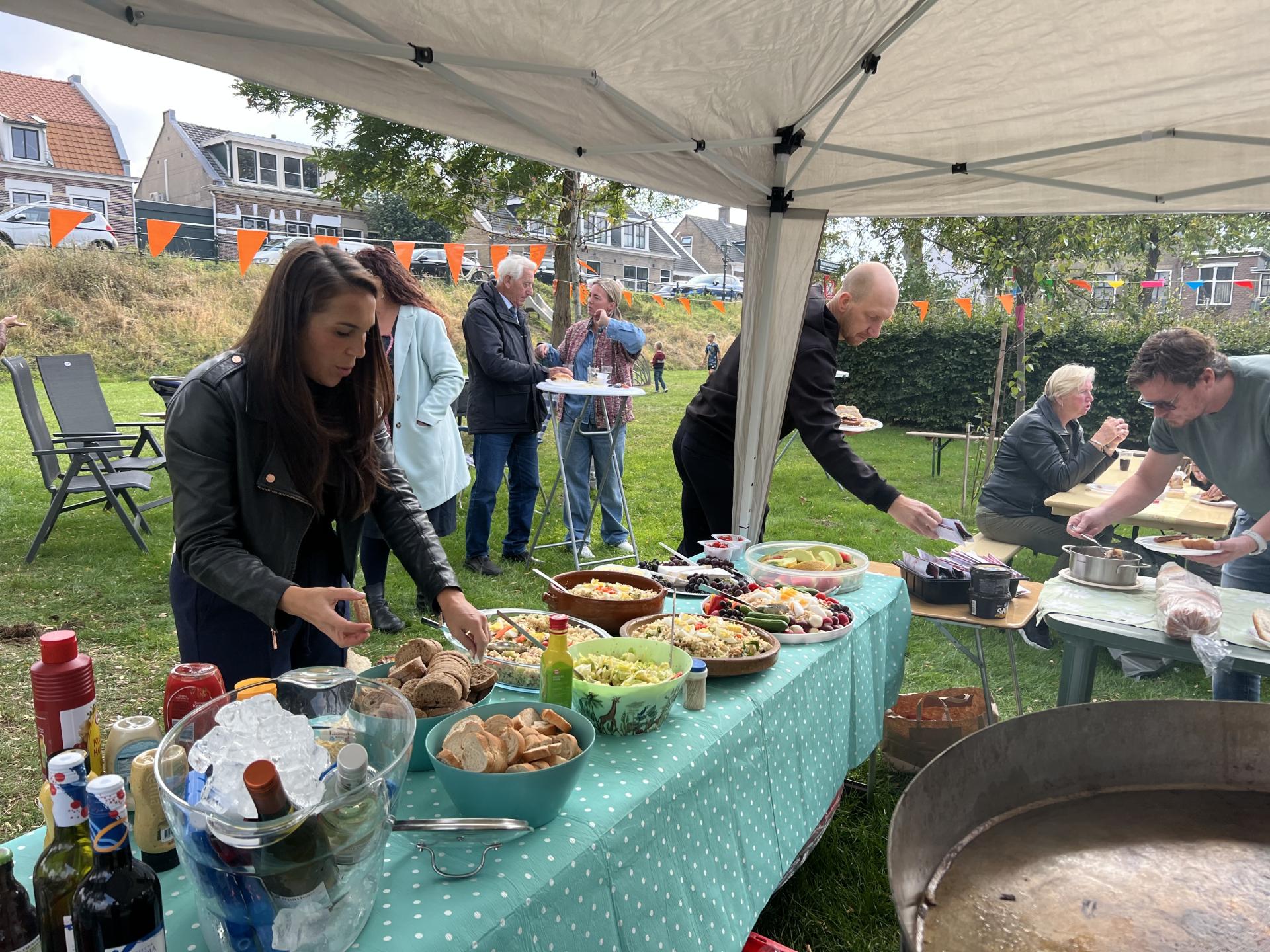 Er waren heerlijke salades gemaakt, en op de barbecue werd heerlijk vlees bereid.
