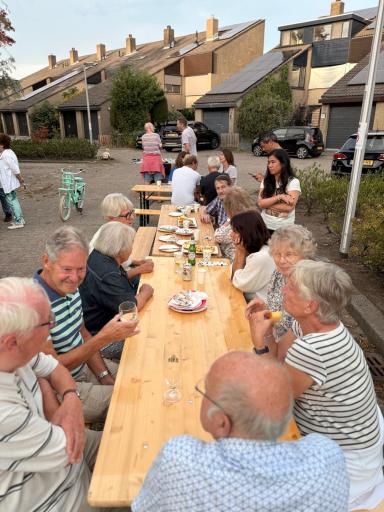 Afgelopen zaterdag 6 september was de jaarlijkse Cycladen BBQ. Het weer was ons goedgezind en we waren erg blij met de gulle donatie vanuit WOP Oostgaarde. We hebben gezorgd dat groot en klein zich welkom voelde. Een springkussen voor de kleine kinderen en een tafelvoetbalspel voor de wat oudere jeugd. Een grote partytent met buffettafels, statafels en bierbanken/tafels. Bij Capelse poelier Dijkshoorn hebben we voor een zeer schappelijke prijs prachtige BBQ’s kunnen huren en kipsate voor ieder die wilde. Aan alle pleinbewoners was gevraagd om een eigen specialiteit te maken en drankjes mee te nemen ‘to share’. Poffertjes werden gebakken waar de kinderen voor in de rij stonden. Van groot tot klein, nieuwe en oude bewoners waren aanwezig in een ongedwongen sfeer. Geen onvertogen woord is er gevallen, heel ontspannen en gezellig. Na afloop is alles door verhuur bedrijf weer opgehaald en het terrein schoongemaakt zodat alle parkeervakken weer beschikbaar waren. Elk jaar opnieuw de bevestiging dat het goed is om dit te blijven doen, niet alleen gezellig maar ook goed voor het ‘noaberschap’, omkijken naar elkaar zodat je ook een hand kunt toereiken waar nodig.