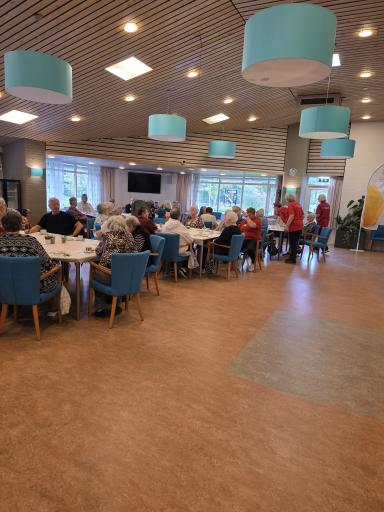 Om 11 uur werd iedereen welkom geheten met koffie en wat lekkers. Gevolgd door een overheerlijke lunch, gemaakt door het ijzersterke team van Bermensteyn. De Quiz vroeg naast wel veel denkwerk ook een behendigheid en goochelen met de kleurtjes Rood en Groen. Een hoogte punt moet zeker niet onvermeld blijven: onze Rosemary Hakkaart. Zij is drie volle termijnen onze secretaris geweest. Zij heeft zoveel betekend voor de Zonnebloem. Gelukkig blijft ze betrokken en zaal ze ons hopelijk nog vele jaren blij maken met het Zonnekrantje. Dank je wel Rosemary!!
