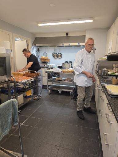 Veel gasten gemixt met vrijwilligers met een heerlijk muziek, aangevuld met eten.