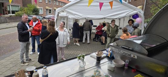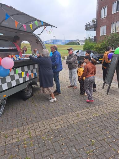 Met ijsje, cupcake, lekkernijen en een bakje koffie was de saamhorigheid van oude en nieuwe bewoners (veel kinderen) van de straten heel erg gezellig (zie foto's).