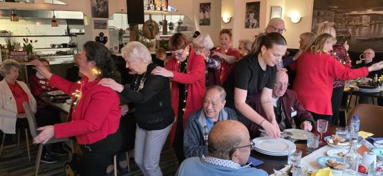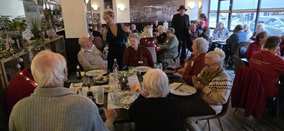 Veel van onze deelnemers en een aantal vrijwilligers voor ondersteuning hebben in Kerstsfeer geluncht. Daarbij hebben ze kunnen genieten van een live optreden van een zangeres die veel herkenbare liedjes ten gehore bracht. Tussendoor is er ook nog een leuke quiz gepresenteerd en konden de aanwezigen aan de tafels lekker bijpraten.
