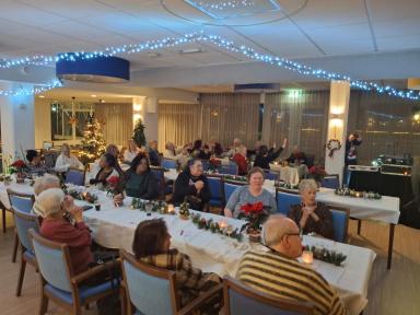 Na het diner gingen de voetjes van de vloer tijdens een gezellige muzikale afsluiting, verzorgd door zanger Peter Gayle. De sfeer was warm en feestelijk en de onderlinge verbondenheid tussen de bewoners was duidelijk voelbaar.