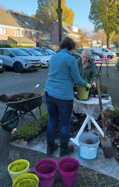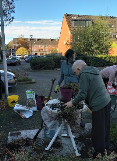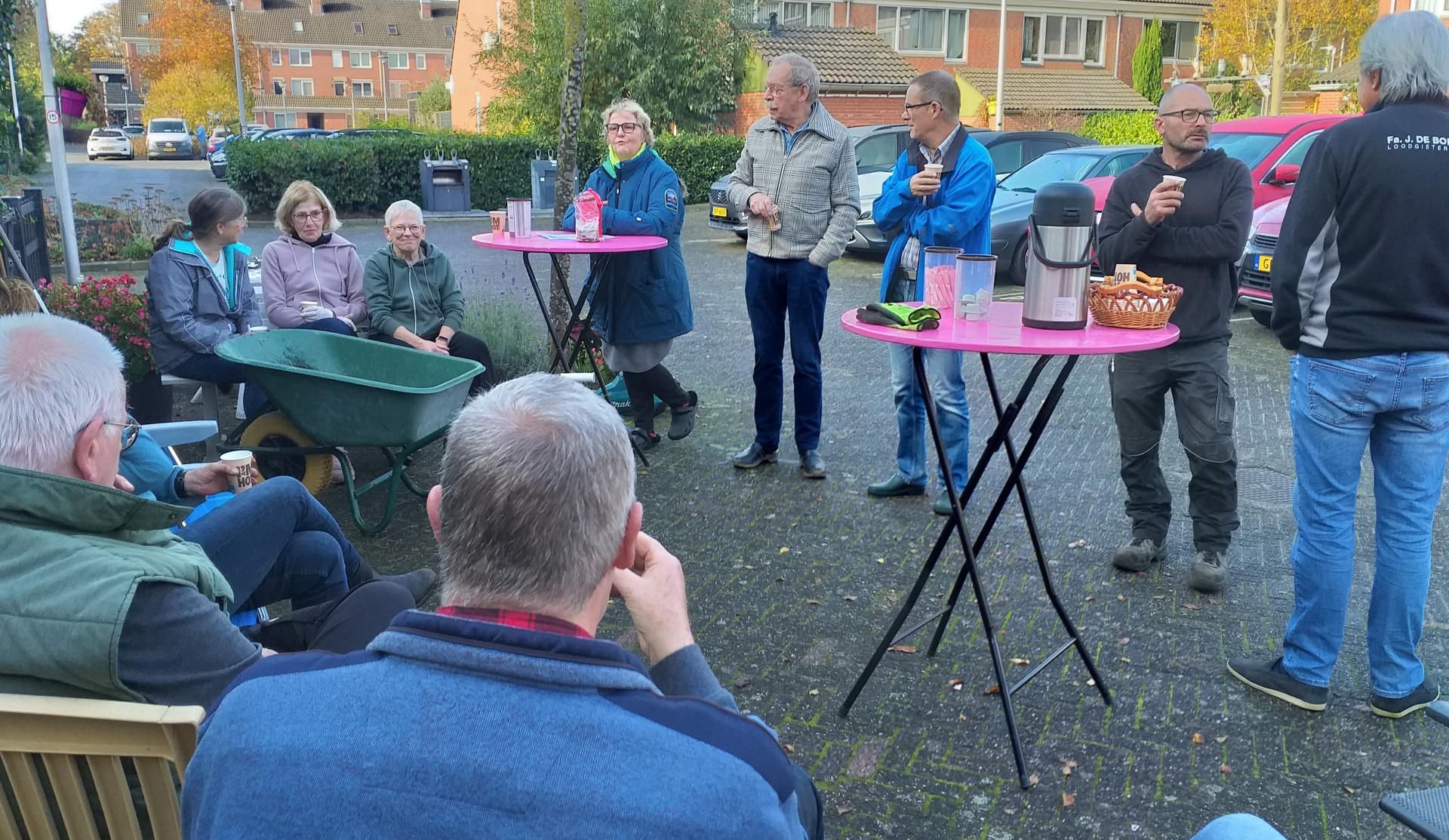 Samen met onze vrijwilligers hebben wij op zaterdag 8 november onze laatste schoffeldag gehouden van dit seizoen 2025 waarin we vanaf april t/m. november om de 4 weken op zaterdag 500m2 geadopteerd gemeentegroen en plantsoenen onderhouden en inmiddels geheel op vrijwillige basis ruim 250 m2 overige stukken gemeentegroen meenemen. Ook zijn gelijktijdig deze dag de zomerbeplanting in de Hanging Baskets weer vervangen voor nieuwe winterbeplanting. Tijdens deze werkzaamheden hebben wij onze vrijwilligers voorzien de nodige koffie met lekkers, erwten en tomatensoep en broodjes warme rookworst.