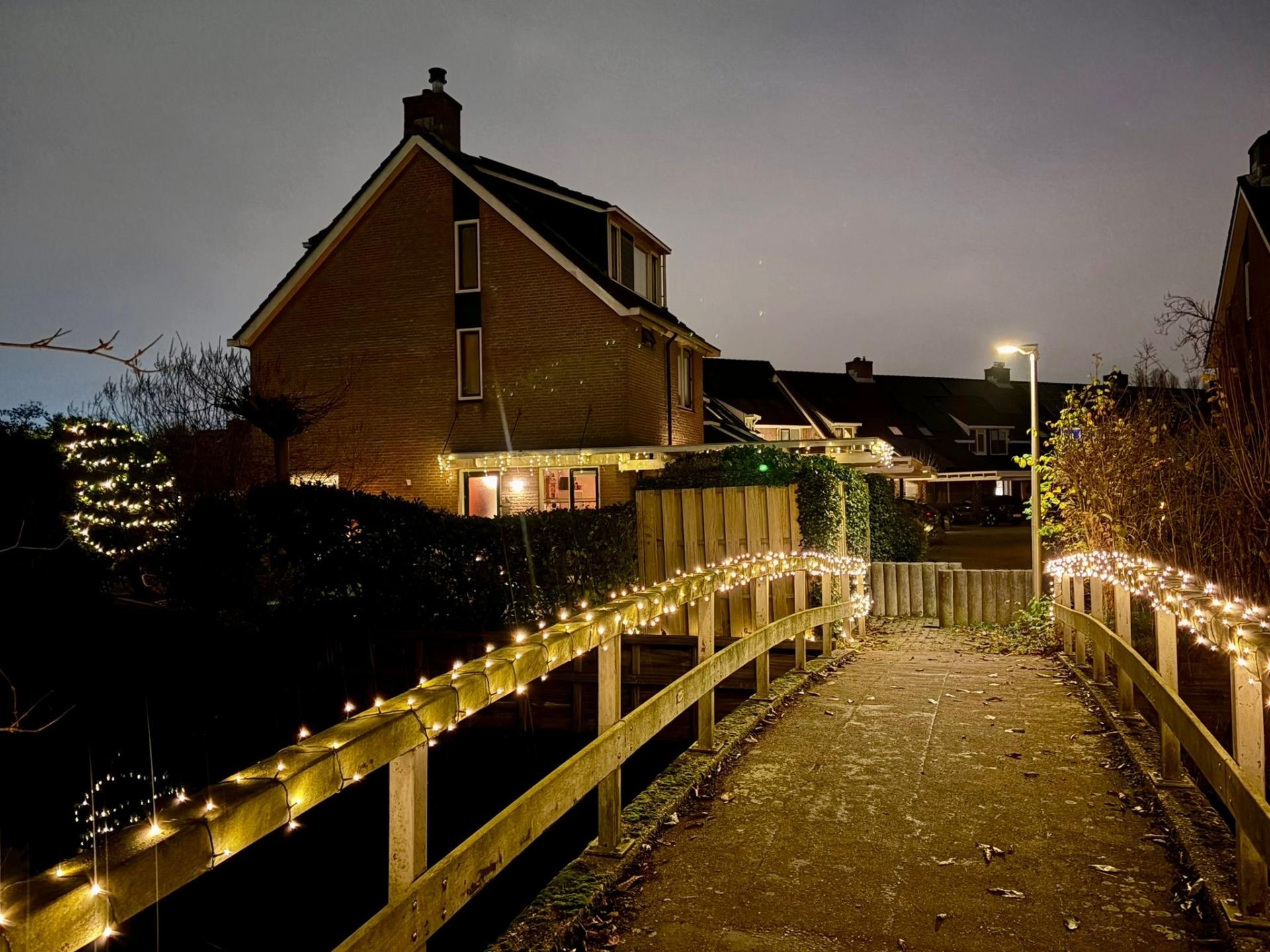 Al een aantal jaar zien we de lichtjes op de bruggen van de andere molens in Schenkel. Nu ook maar de stoute schoenen aangetrokken om een bijdrage te vragen voor het versieren van “onze” brug. De bewoners van onze molen reageerden direct enthousiast op ons initiatief en zegden ook hun hulp toe. Vandaag de bijdrage gevraagd en gekregen, gelijk een lichtsnoer gekocht en met een aantal buren het lichtsnoer bevestigd. Het resultaat is oogverblindend.