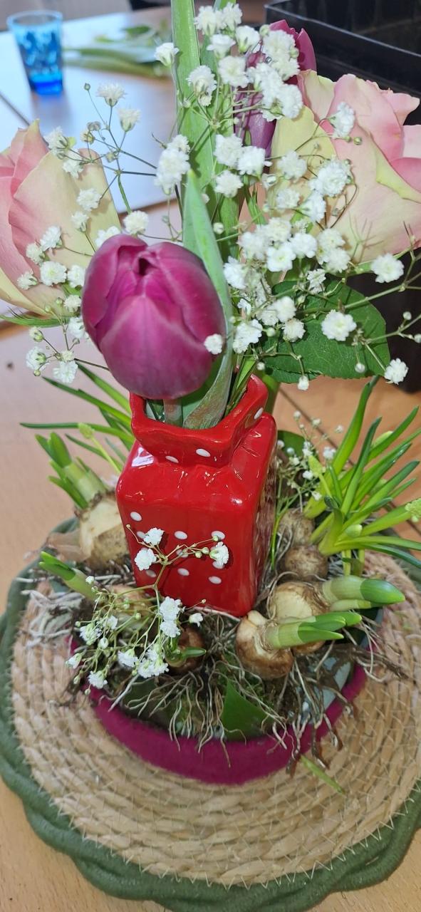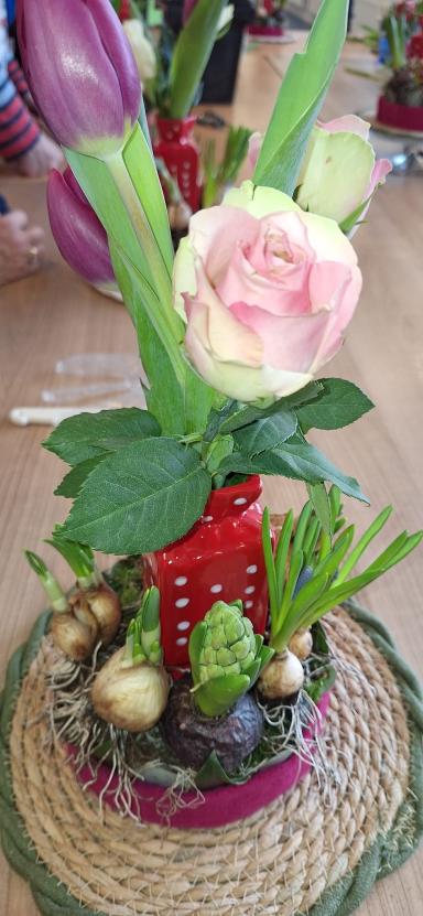 Maar hoe bijzonder is het om zelf een bloemstuk te maken, onder begeleiding een ervaren deskundige.