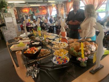 Wederom werd dit jaar, op tweede paasdag, weer een paasbrunch voor de bewoners van wooncomplex vogeltuinen georganiseerd door vrijwilligers. Nadat alle inkopen waren bezorgd werden de diverse tafels opgemaakt waarna het zgn lopend paasbuffet kon plaatsvinden