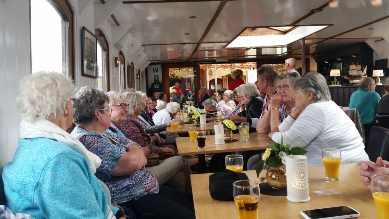 Nadat alle gasten op verschillende locaties zijn opgehaald met de bus, vertrokken wij richting de haven van Schiedam om aan boord te gaan van de boot. Daar ingescheept werd het gezelschap hartelijk ontvangen door de bemanning en getrakteerd op koffie met gebak. Tijdens het varen door de verschillende havens werd het gezelschap in een muzikale stemming gebracht met live muziek door een accordionist. De stemming zat er goed in en de dag was een groot succes. Alle gasten waren zeer blij en tevreden over de vaartocht. Voor ons als vrijwilliggers een vermoeiende maar enorm dankbare dag, als je merkt dat jouw inzet door gasten zo enorm wordt gewaardeerd.