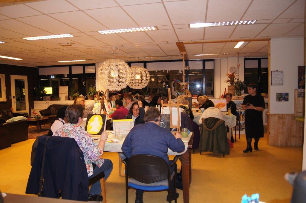 Mevrouw Seba houdt een oogje in het zeil, maar dat is eigenlijk niet nodig, na haar uitleg en een gebed ging iedereen aan de slag. Er werden prachtige stukjes gecreëerd waarvan sommigen niet eens wisten dat zij het schilderen in de vingers hadden. Kortom het was weer een gezellige activiteit aan het Stationsplein 20, waaraan 25 dames meededen.